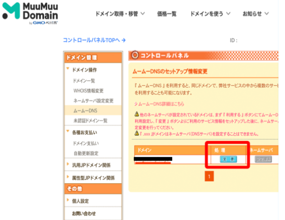 以下に、ドメイン管理サービスとして「ムームードメイン」をご利用の場合の設定手順例を記載します。