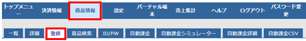 (管理画面 ⇒ 商品情報 ⇒ 登録 より)