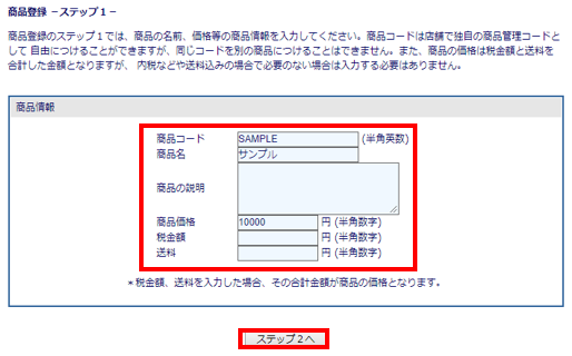 ステップ1:商品コード・商品名・金額 が必須項目になります。