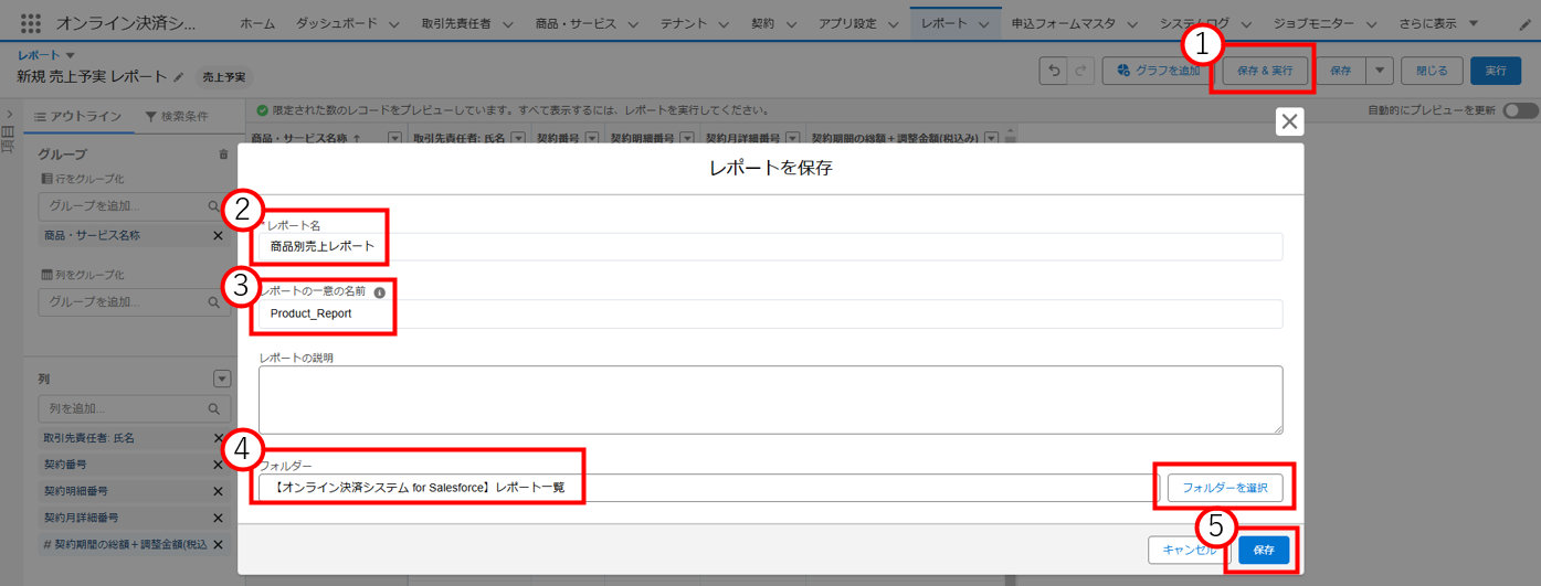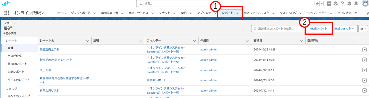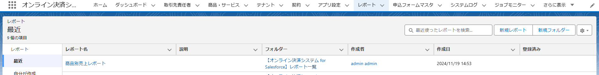 [【オンライン決済システム for Salesforce】レポート一覧]に変更