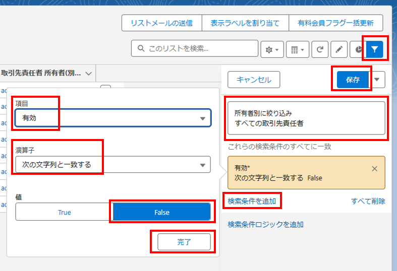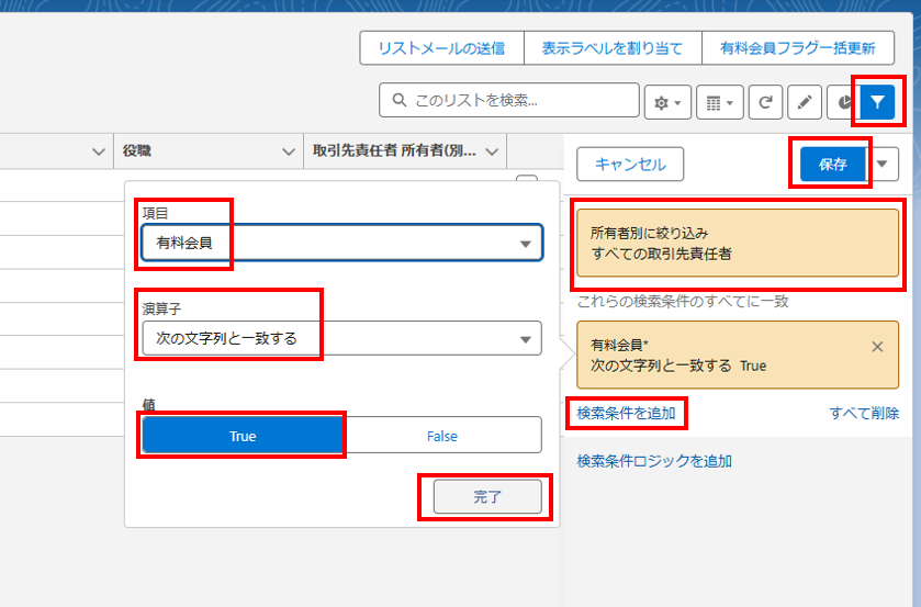 2.検索条件の設定(例:有料会員リスト)