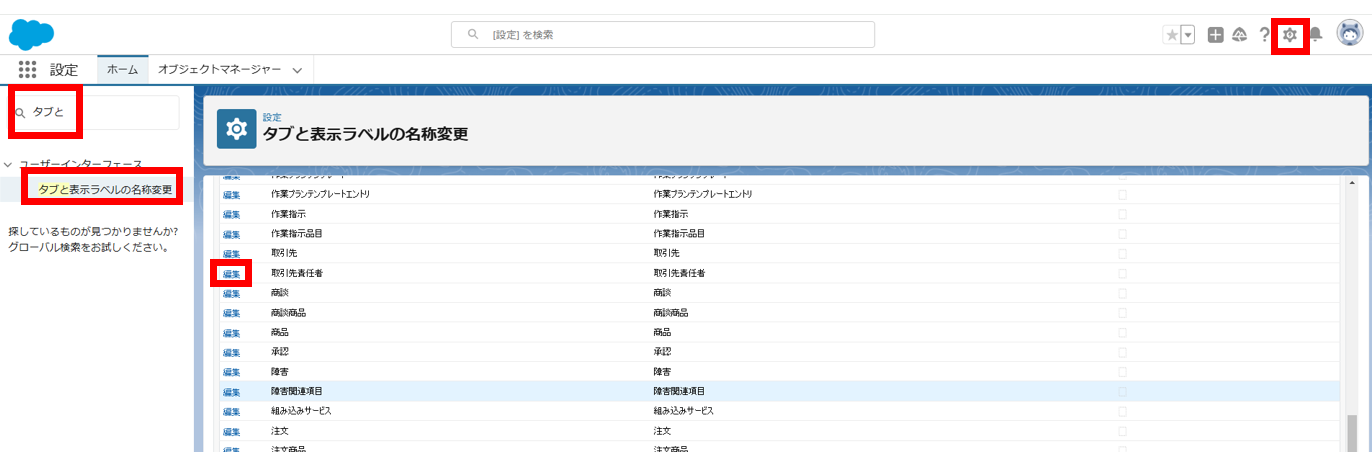 ③:タブ名[取引先責任者]横にある[編集]を押下。