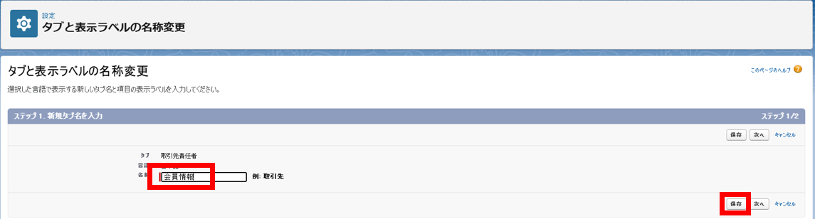 このヘルプでは、Salesforce契約管理画面上のメニュー(タブ)にある「取引先責任者」を別の名称(会員情報や会員一覧)に変更する方法をご紹介します。