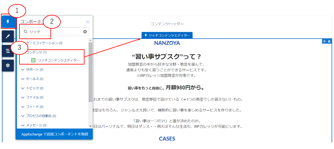 #リッチコンテンツエディター #コンポーネント追加 #コンテンツ編集 #サイトページ編集