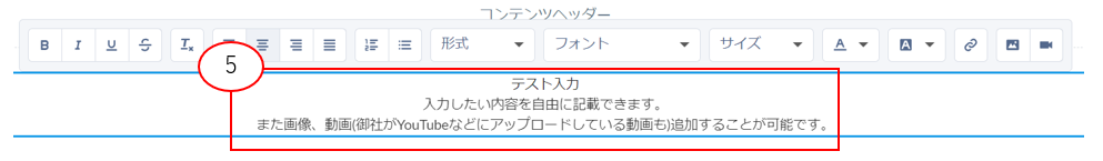 ⑤ 編集画面が開き、表示させたい文字を入力したり、画像を挿入したりするなど、自由にコンテンツの編集を開始できます。