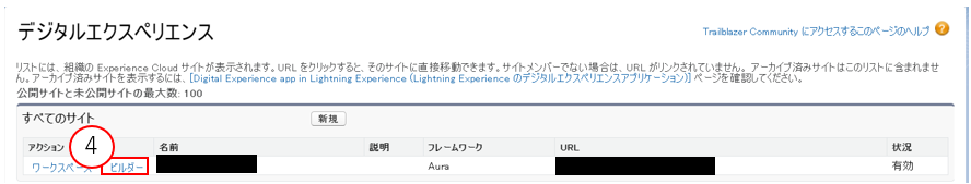 ④ サイトの一覧が表示されますので、編集したいサイトの右側にある「ビルダー」をクリックします。