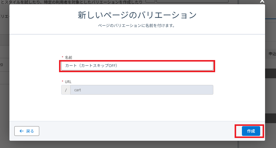 ③名前を「カート(カートスキップOFF)」と入力>作成