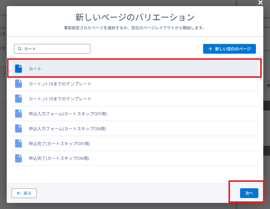 3.「カート」ページのバリエーション設定