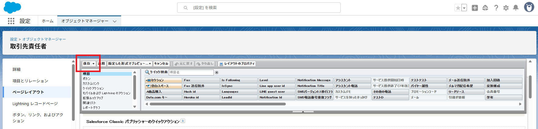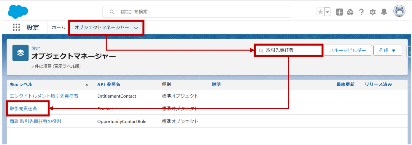 - オブジェクトマネージャー> 取引先責任者 をクリック