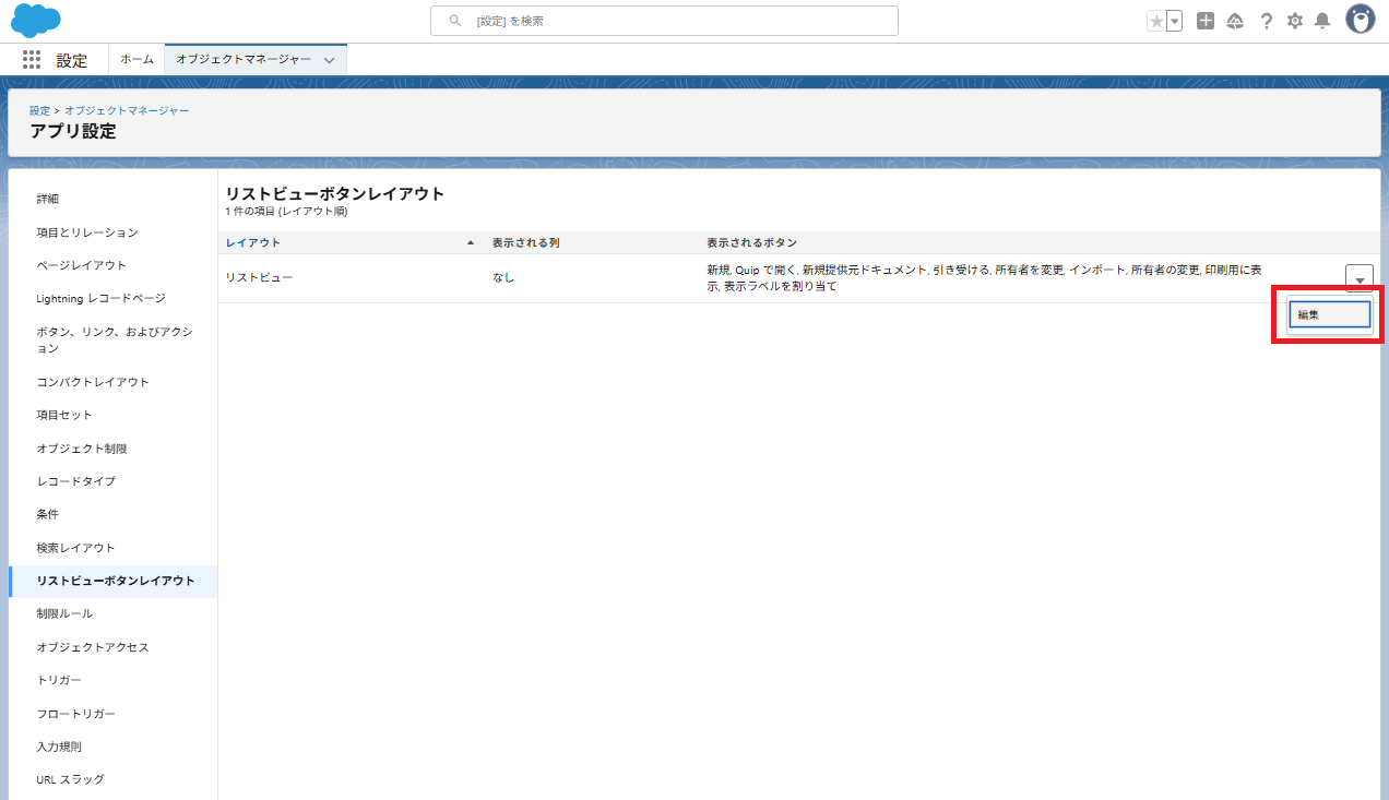 3.リストボタンビューレイアウト>リストビューの編集を選択。