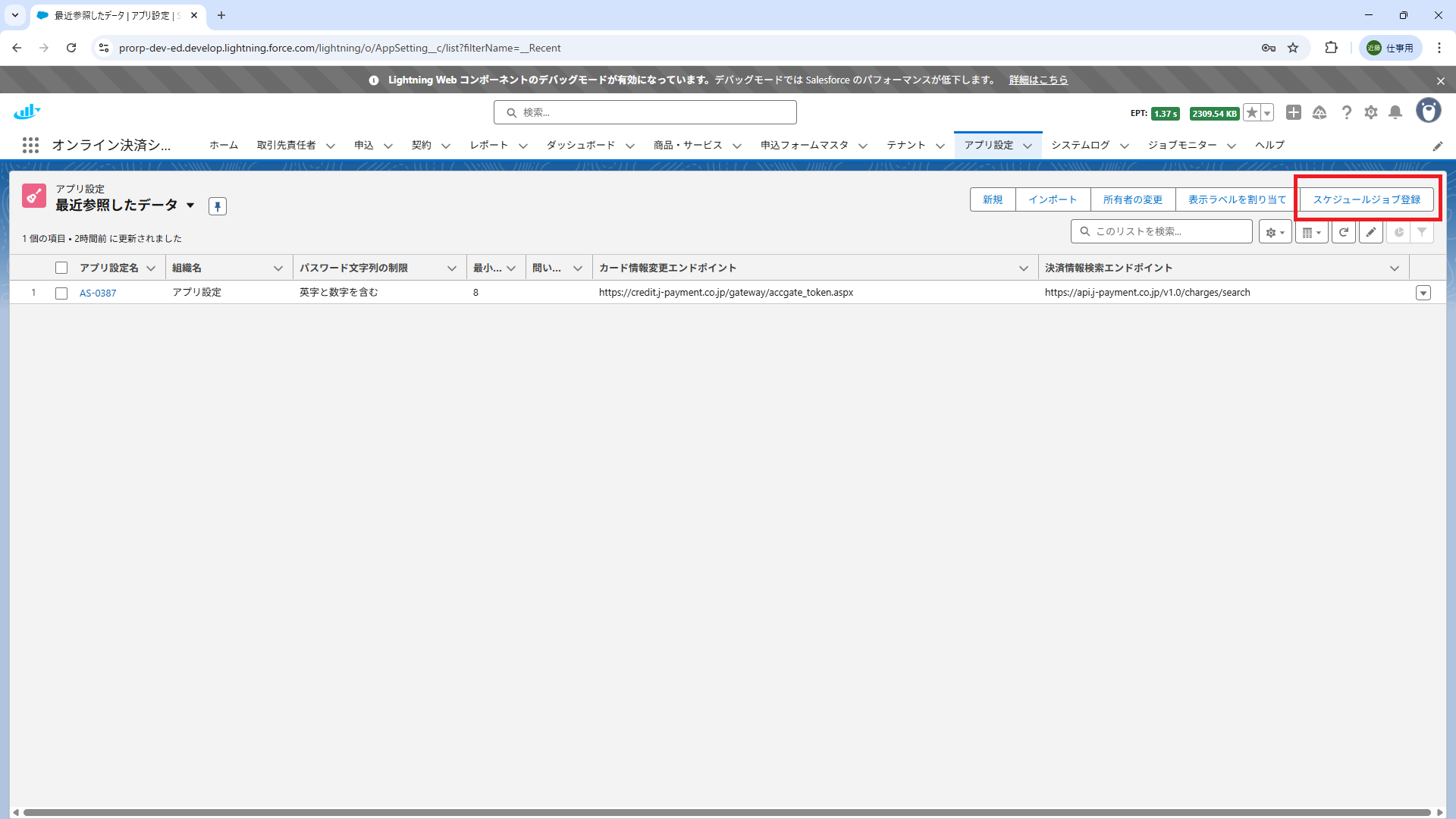 6.アプリ設定画面の右上にある「スケジュールジョブ登録」ボタンを押して、ジョブスケジュールを一括登録。