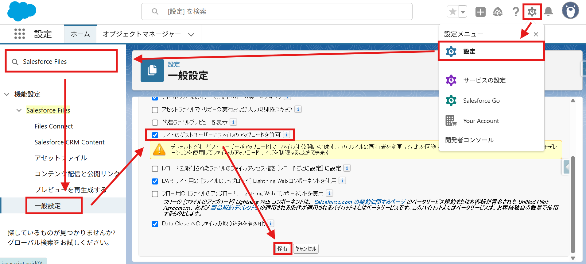 4-1. 「設定」を開き、クイック検索から「Salesforce Files」を検索し、クリックします。