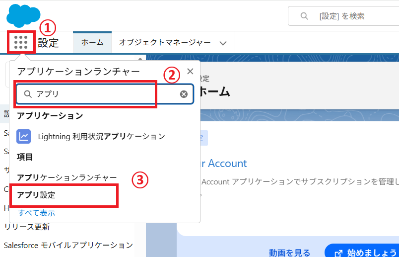 2.オブジェクトマネージャー>アプリ設定を選択。