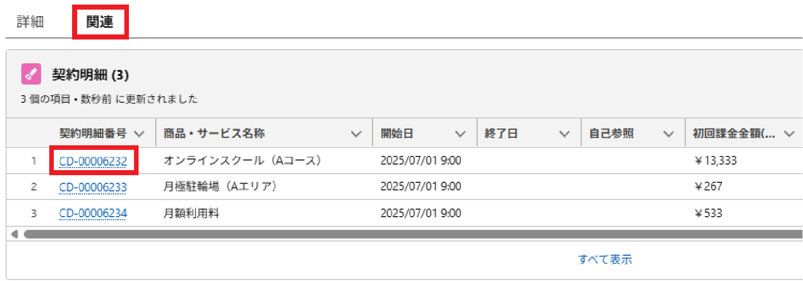 取引先責任者より、対象の会員を選択 > 該当の契約一覧から「次回課金分(契約開始日が未来月)」の契約番号をクリック