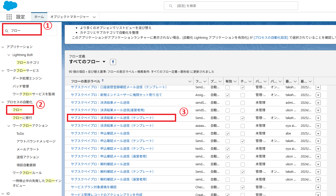 ② フローの一覧が表示されます。この中から、【改修版】サブスクペイプロ:決済結果メール送信(テンプレート)を選択します。