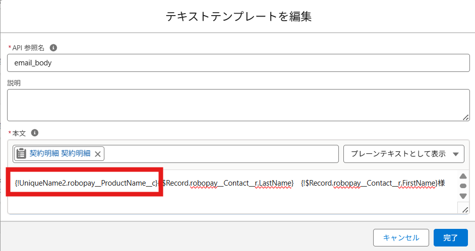 API 参照名:他の参照名と重複しないように、末尾に数字などを追加して変更してください。