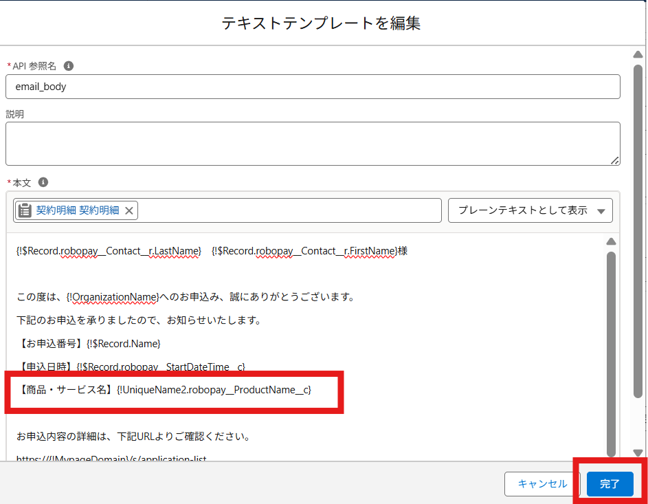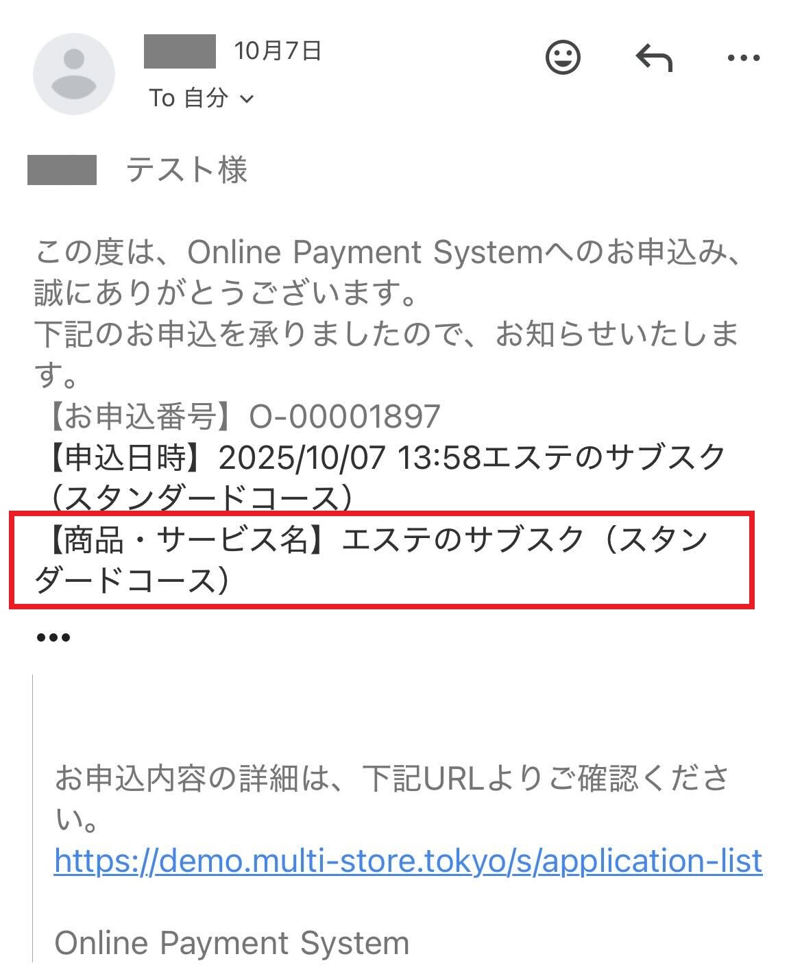 届いたメールを開き、メール本文に商品・サービス名称が正しく追記されているかご確認ください。