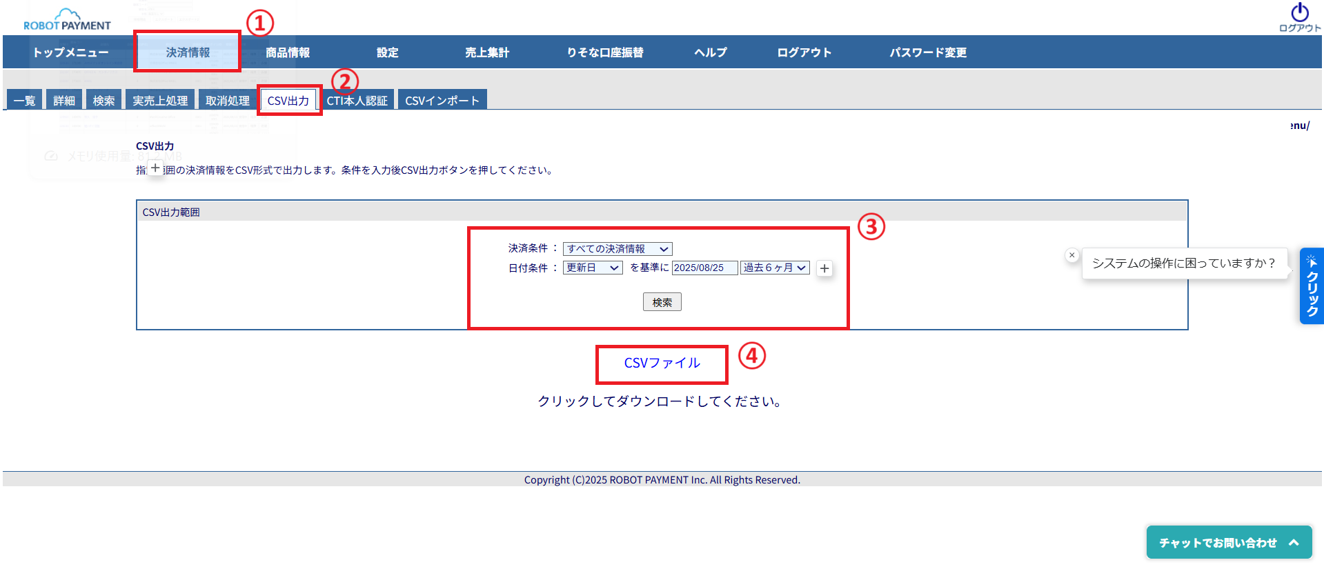 決済システムに格納されているデータは、CSVファイルとして抽出することが可能です。