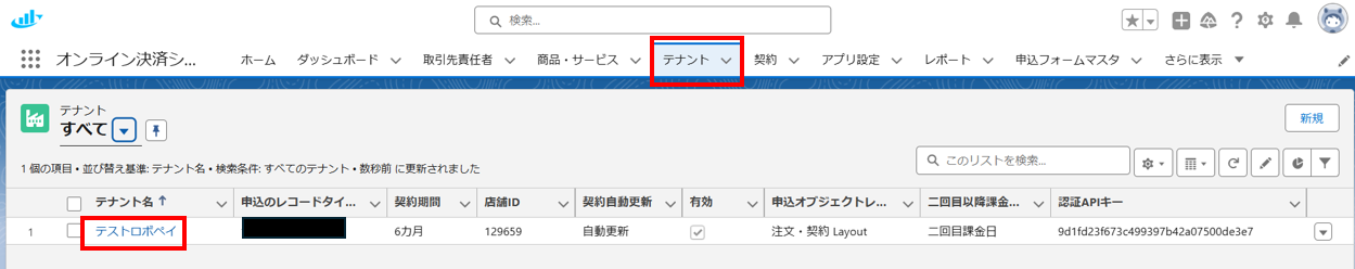 作成されたテナントは、メニューの【テナント】から確認可能です。